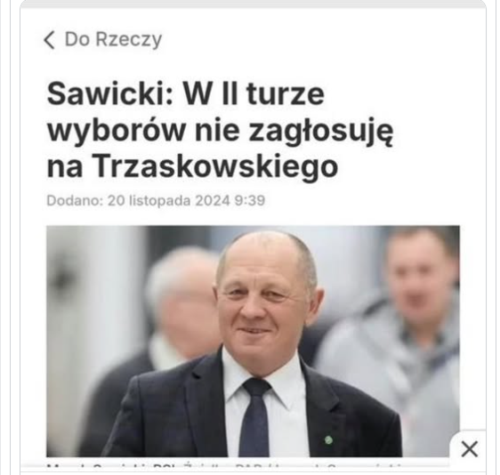Sawicki mówi, że nie poprze Trzaskowskiego w II turze