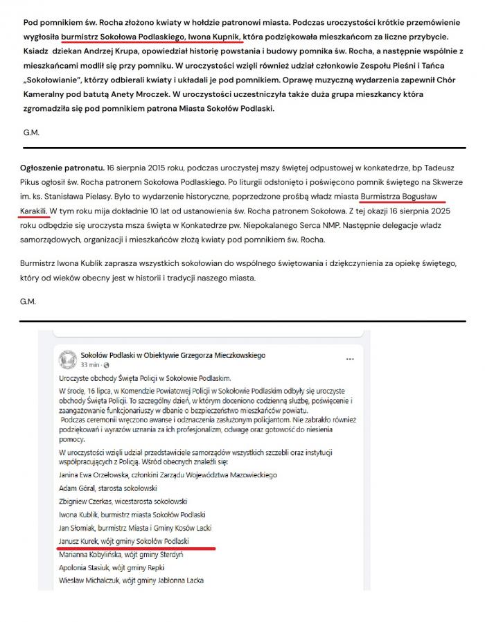 Burmistrz Iwona Kublik zwróciła się o patronat medialny nad wydarzeniem „Sokołów Podlaski Stolicą Poloneza” do kilku redakcji. Grzegorz Mieczkowski, w swoim stylu, pochwalił się na Facebooku, że on też o patronat został poproszony. Ba! Nawet udostępnił pismo w tej sprawie. Pomijając fakt, że jest to nieprofesjonalne, zrozumieć należy radość „redaktora”. Finał był jednak taki, że odmówiły inne media. Ostatecznie wśród patronów znalazł się portal Grzegorza Mieczkowskiego oraz wydawana w Łochowie przez znajomą pani wiceburmistrz gazeta „Z Biegiem Liwca”. „Życie Siedleckie” objęło patronatem wydarzenie odpłatnie.