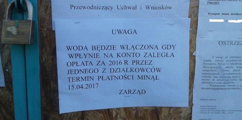 Jak udało nam się dowiedzieć, o wprowadzeniu takich sankcji zdecydował zarząd. Lokator, który je spowodował zalega z zapłatą ponad 200 zł - chodzi o opłaty działkowe, za prąd oraz za wodę.