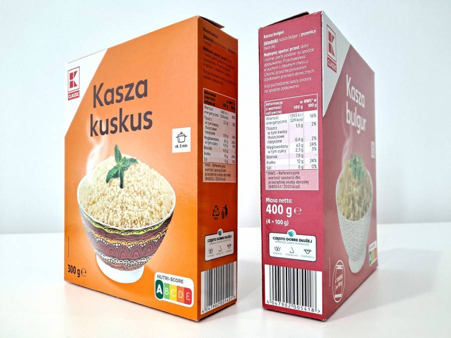 Oznaczenia znajdują się już na opakowaniach kaszy bulgur i kuskus marki K-Classic. Kolejne oznaczenia mają się pojawiać sukcesywnie na kolejnych produktach, w tym makaronach czy płatkach.