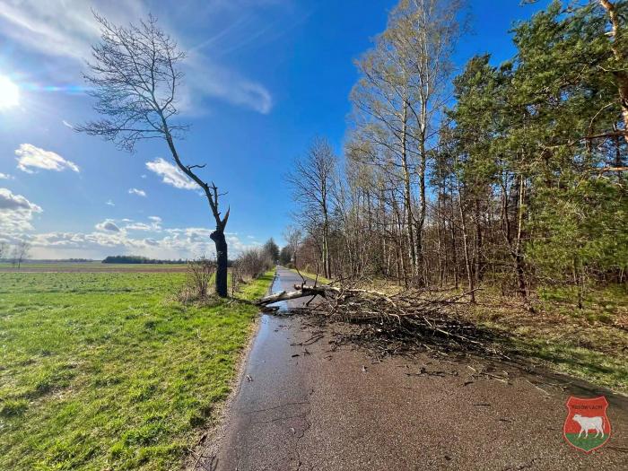 W poniedziałek, 6 kwietnia, strażacy od rana usuwają skutkami silnych wiatrów, które przechodzą nad powiatem sokołowskim.