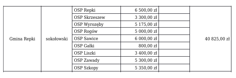 Kwotę 40 825 zł otrzyma gmina Repki na zakup sprzętu dla swoich jednostek. Szczegóły w tabeli.