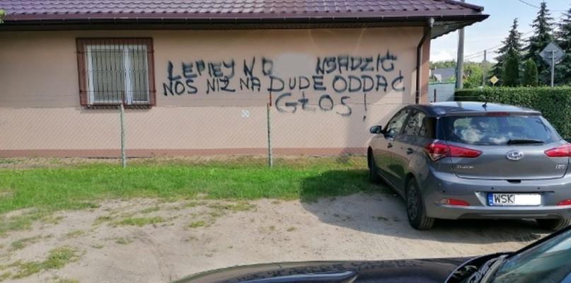 W nocy z niedzieli na poniedziałek wandal umieścił wulgarne napisy na ścianie Domu Działkowca w ROD Słoneczko przy ul. Ząbkowskiej w Sokołowie Podlaskim.