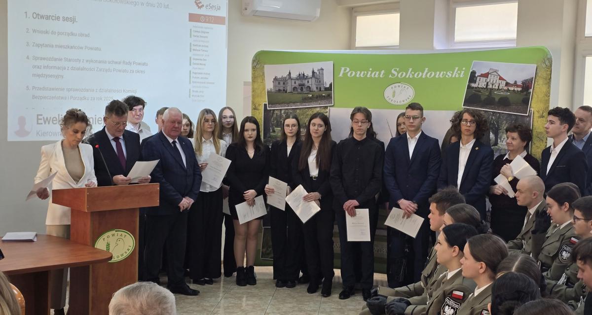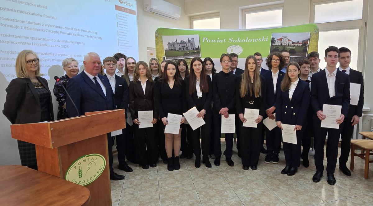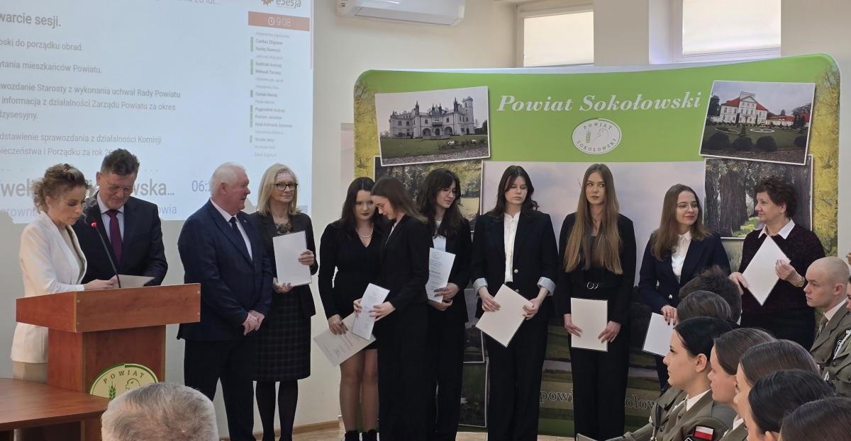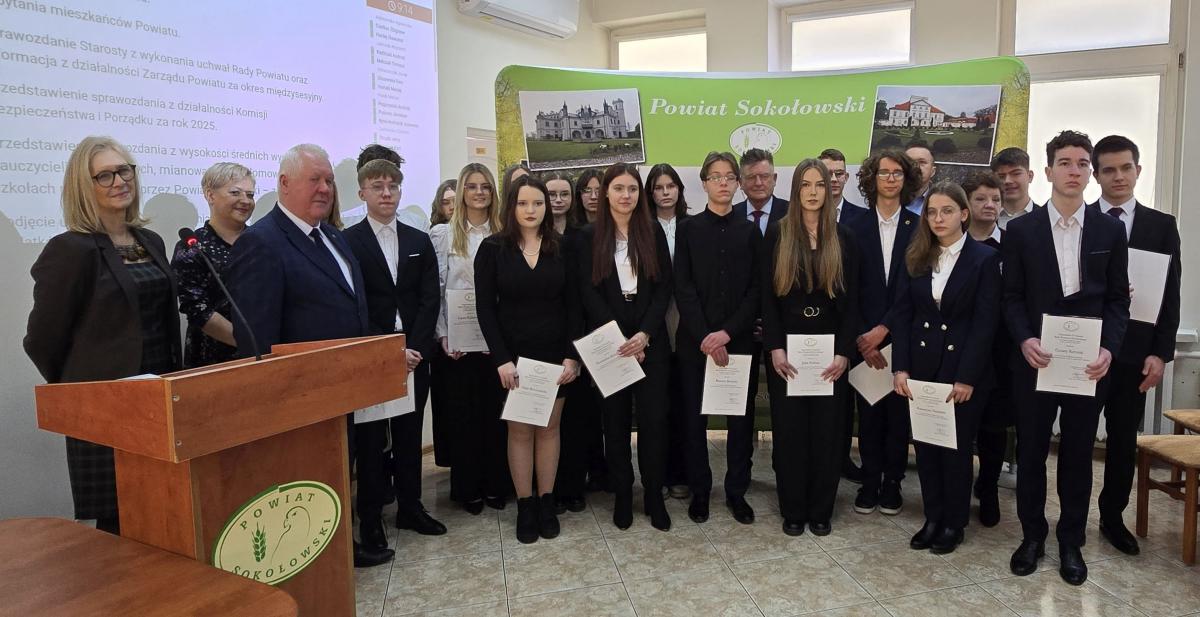 Stypendia Rady Powiatu Sokołowskiego przyznawane są uczniom szkół powiatu sokołowskiego za wybitne osiągnięcia w nauce, sporcie i sztuce. Uczniowie otrzymują stypendia I lub II stopnia, w zależności od swoich osiągnięć. Wśród laureatów znajdują się zarówno uczniowie Zespołu Szkół Specjalnych im. Jana Pawła II, I LO im. Marii Skłodowskiej-Curie, jak i Zespołu Szkół Nr 1 im. Krzysztofa Kamila Baczyńskiego. Wśród wyróżnionych uczniów znaleźli się m.in. Kinga Pióro, Piotr Maćkowiak, Julia Marchel, Katarzyna Niemirka, Klaudia Ryćko, Emilia Banasiuk czy też członkowie Grupy Teatralnej „Preteksty”. Ich osiągnięcia są docenione i nagrodzone stypendiami.