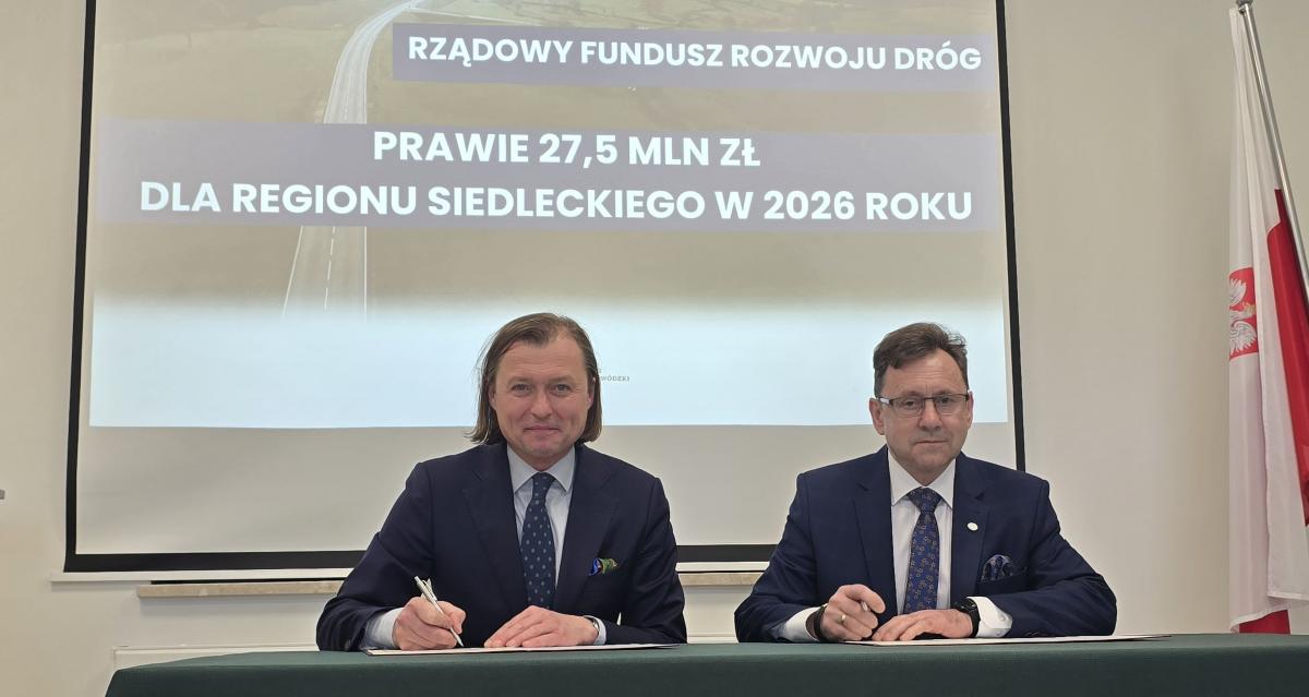 Podpisano umowy na dofinansowanie drogowych inwestycji z Rządowego Funduszu Rozwoju Dróg na Mazowszu. Samorządy z powiatów sokołowskiego, siedleckiego i łosickiego otrzymają łącznie ponad 24 mln zł na 12 zadań. Powiat sokołowski szykuje przetarg na przebudowę dwóch odcinków dróg, Sokołów Podlaski dokończy modernizację Alei 550 Lecia, a gminy Jabłonna Lacka i Sterdyń już rozpoczęły działania.