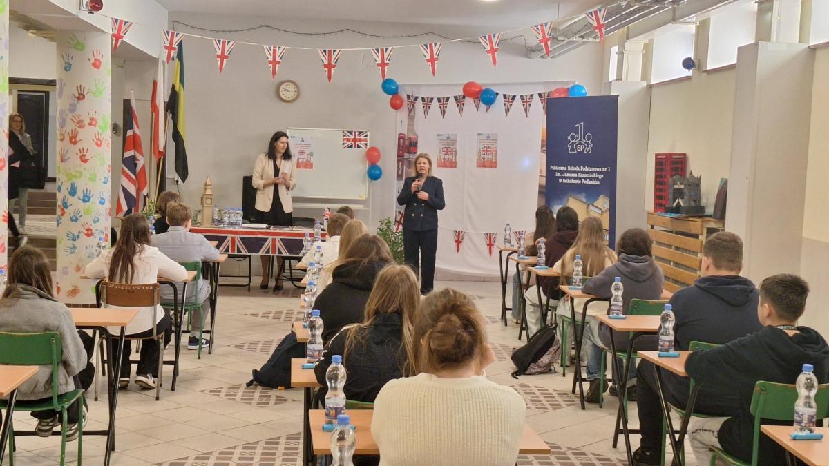 Piąta edycja językowego konkursu zgromadziła 26 uczniów z powiatu sokołowskiego. Uczestnicy sprawdzili się w zadaniach ze słownictwa i gramatyki, wiedzy o krajach anglojęzycznych oraz rozumienia tekstów i użycia języka w praktyce. Do zmagań przygotowywało ich 15 nauczycieli. Wydarzenie podkreśliło też dwujęzyczny profil PSP nr 1 i doświadczenia z programu Erasmus+.