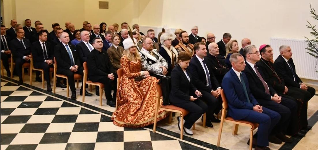 W galerii zdjęć znajdują się ujęcia z spotkania z udziałem senatora Waldemara Kraski, samorządowców z powiatu sokołowskiego oraz artystów Zespołu Pieśni i Tańca "Sokołowianie". Redaktor Dariusz Bohatkiewicz dzielił się doświadczeniem dziennikarskim, a wójt gminy Wyszki składając życzenia biskupowi Piotrowi Sawczukowi. Na zdjęciach widać również biskupa, który wyraża wdzięczność za życzenia i przypomina o ważności spotkania przy nowo narodzonym Chrystusie. uczestnicy dzielą się opłatkiem i składają sobie świąteczne życzenia na tle świątecznego nastroju.