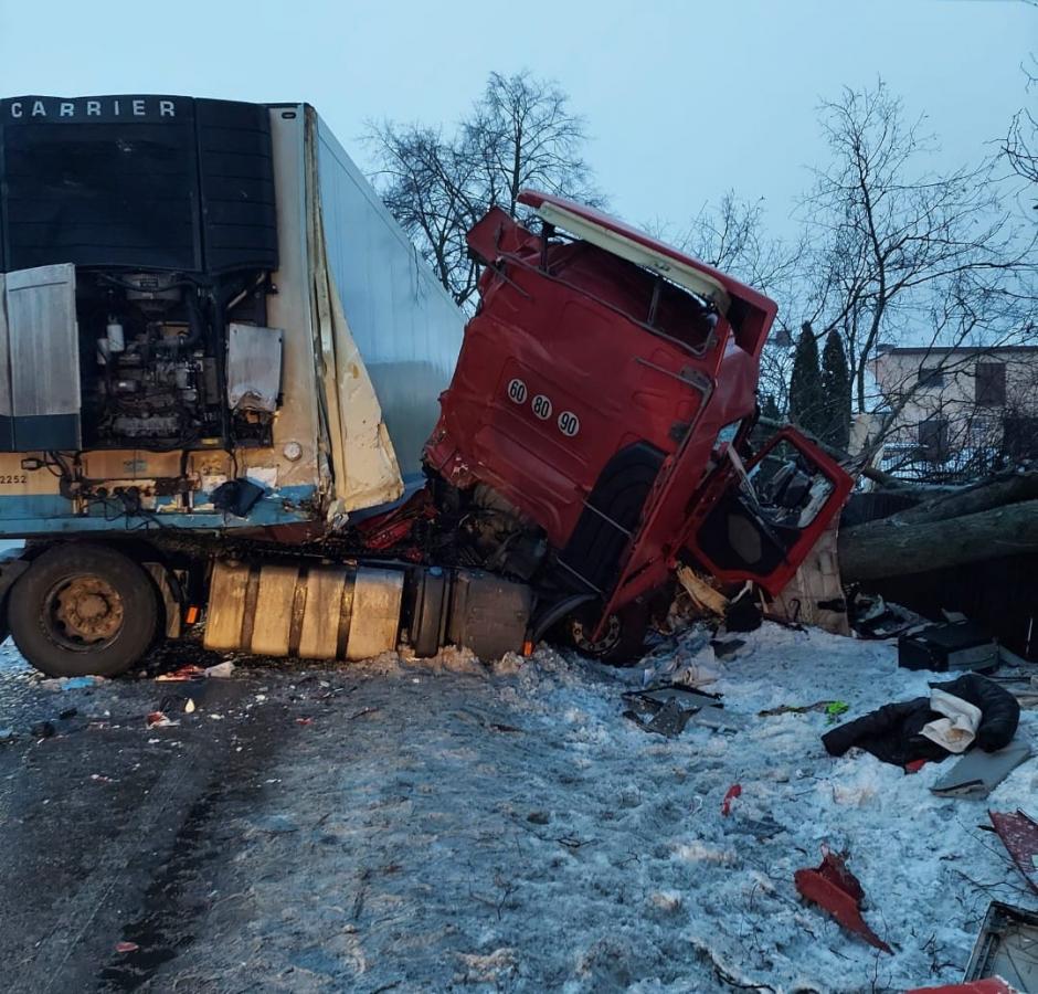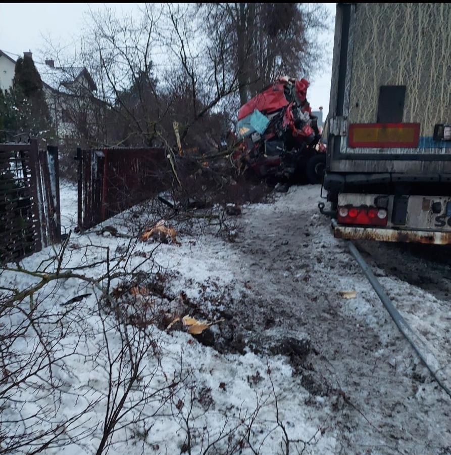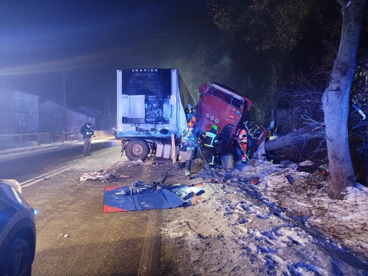 Zdjęcia Nocny wypadek w Bielanach, ciężarówka ścięła drzewo... - fotorelacja