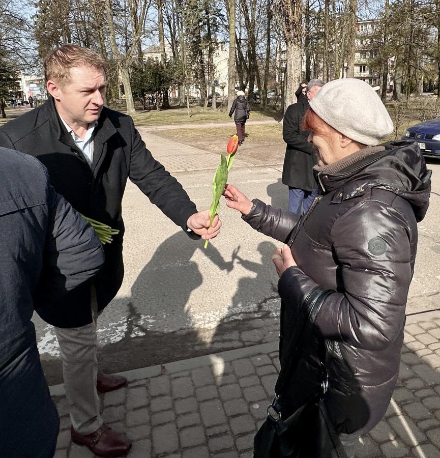 Radni powiatowi rozdawali paniom kwiaty