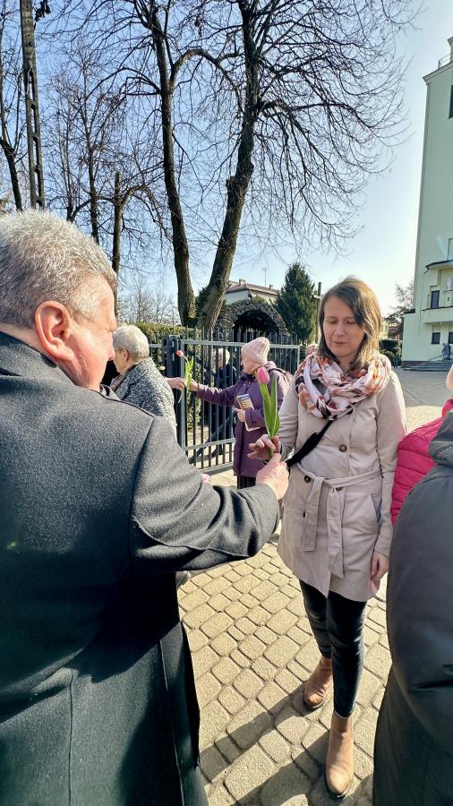 Radni powiatowi rozdawali paniom kwiaty