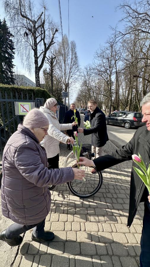 Radni powiatowi rozdawali paniom kwiaty
