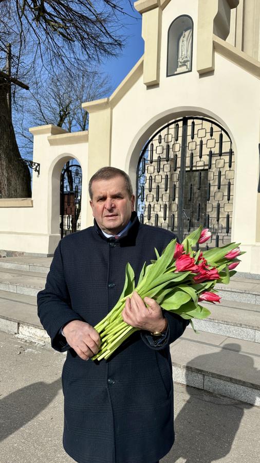 Radni powiatowi rozdawali paniom kwiaty