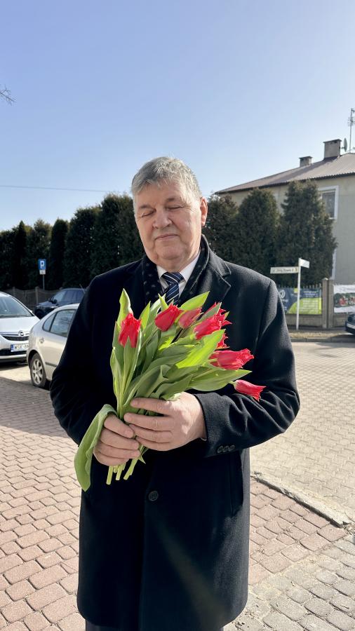 Radni powiatowi rozdawali paniom kwiaty