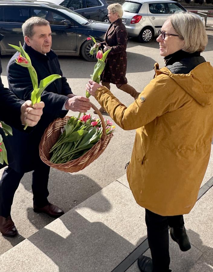 Radni powiatowi rozdawali paniom kwiaty
