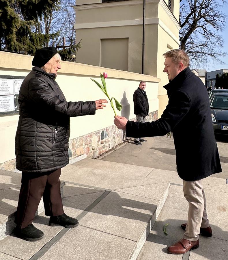 Radni powiatowi rozdawali paniom kwiaty