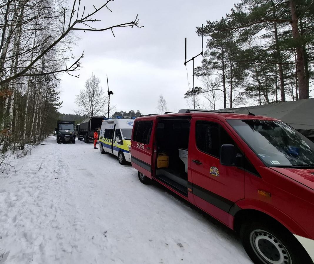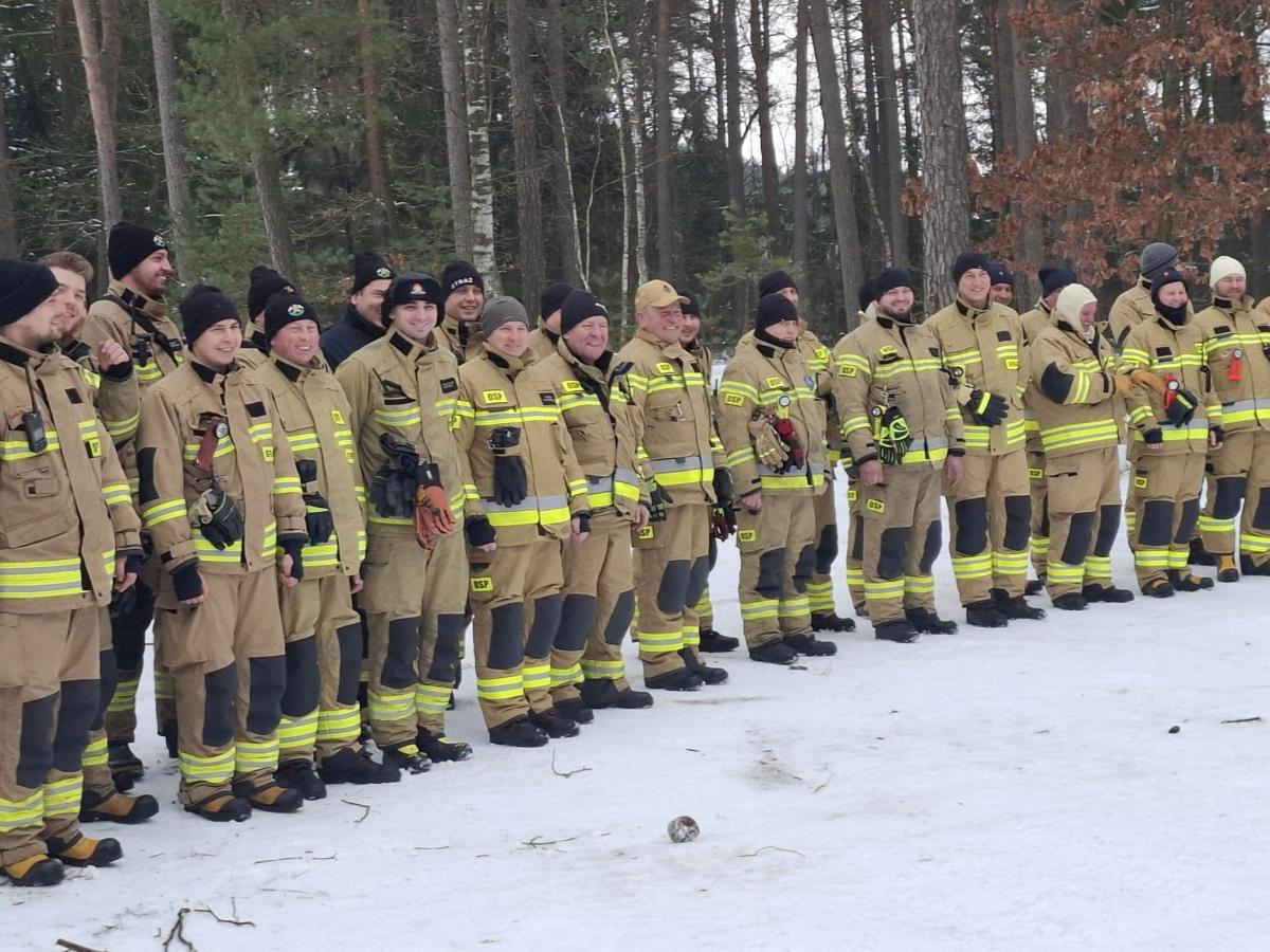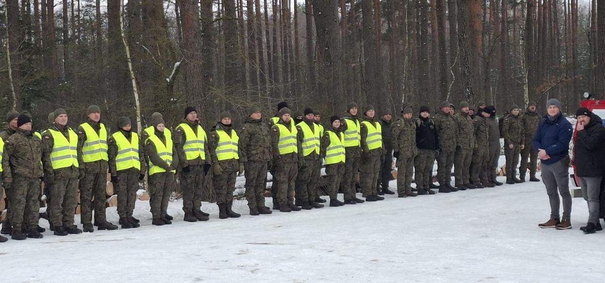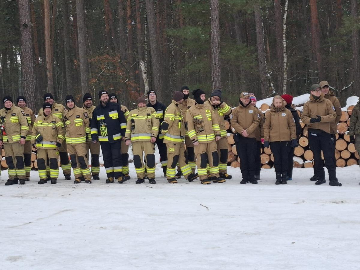 Zdjęcia przedstawiają ćwiczenia z udziałem żołnierzy, policji i strażaków w kompleksie leśnym leśnictwa Kurowice. Uczestniczyli w nich żołnierze 53. Batalionu Lekkiej Piechoty z Siedlec, 5. Mazowieckiej Brygady Obrony Terytorialnej, policjanci oraz strażacy. Szkolenie skupiało się na poszukiwaniu osób zaginionych w terenie leśnym i współpracy między służbami. Na fotografii widoczni są m.in. komendant PSP oraz zastępca komendanta policji. To doskonała okazja do doskonalenia współpracy i sprawdzania sprzętu w praktyce.