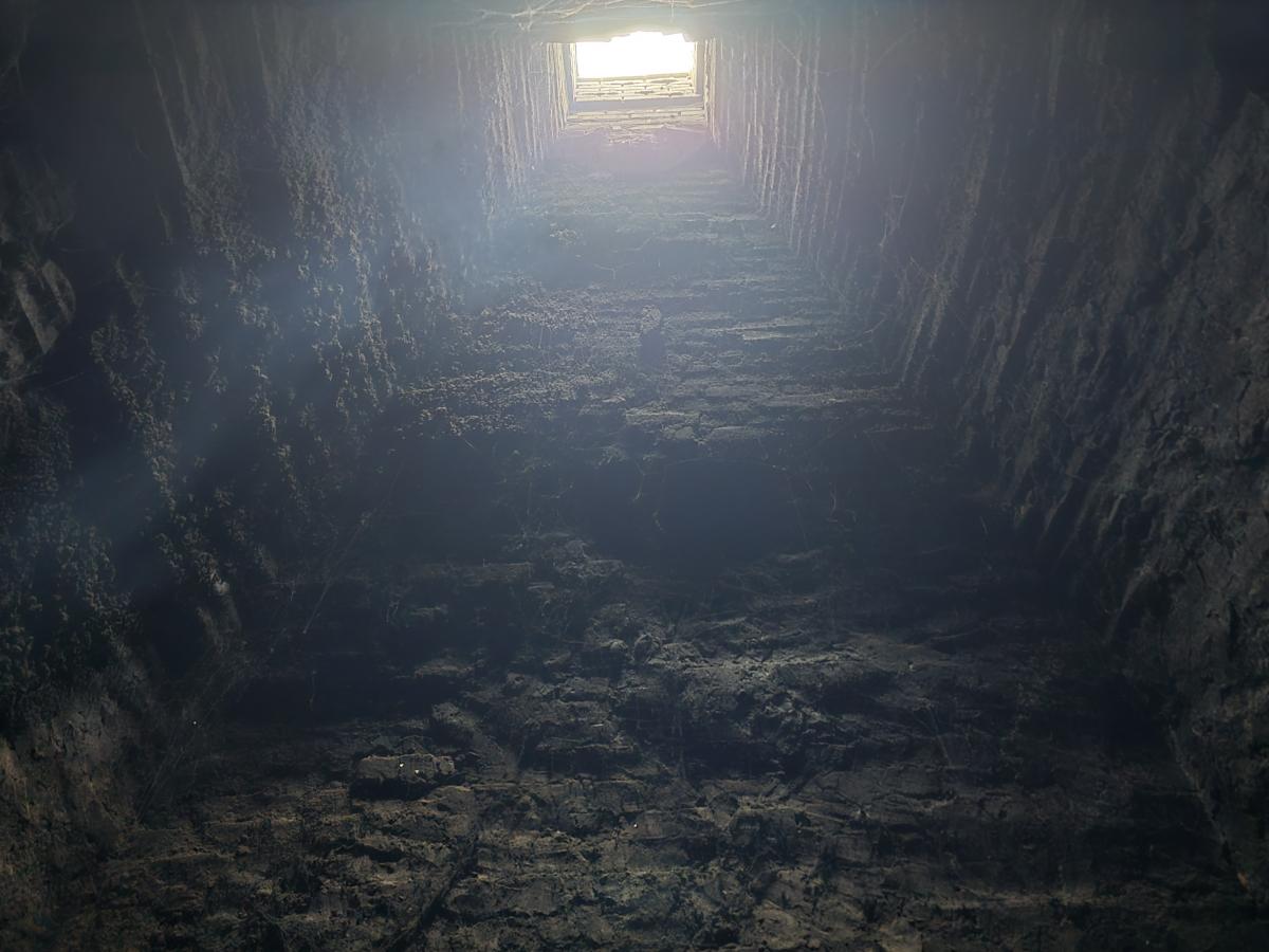 Kryjówka w kanale dymowym, w której ukrywali się uciekinierzy z Treblinki - wchodzili do środka przez piec kuchenny - zdejmowano blat z fajerkami. FOT. BGG