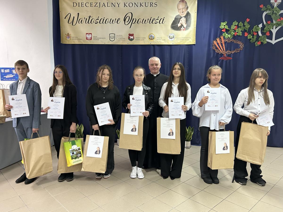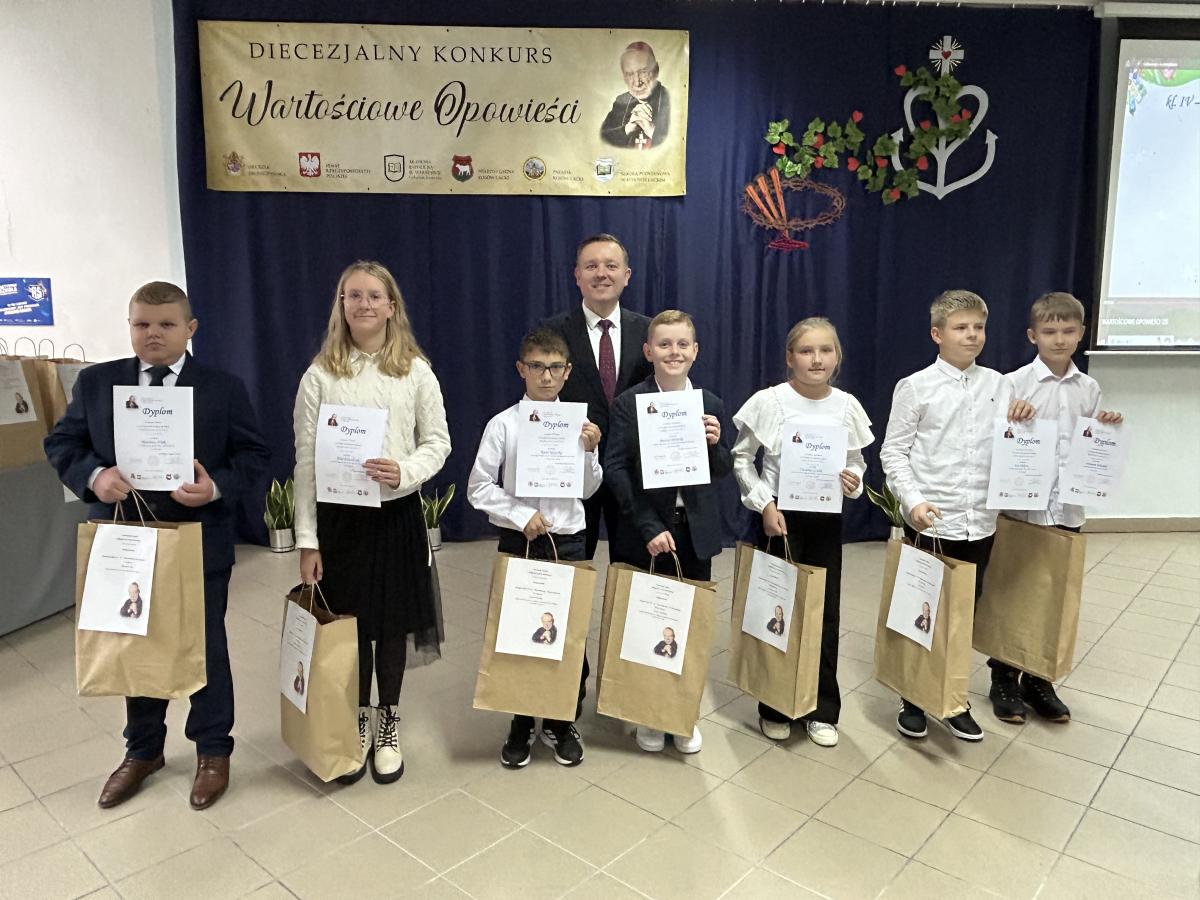 W atmosferze uroczystości spotkali się organizatorzy, uczestnicy, rodzice, patroni honorowi i sponsorzy. Szczególnymi gośćmi byli Ksiądz Biskup Piotr Sawczuk, ks. dr Krzysztof Mielnicki, ks. Marcin Gołębiewski, ks. kan. Paweł Anusiewicz, Zbigniew Czerkas, Ewa Olszewska, Sylwester Rytel-Andrianik oraz Paweł Nasiłowski. Konkurs "Wartościowe Opowieści. Łączy nas nadzieja" skierowany był do uczniów szkół podstawowych z diecezji drohiczyńskiej i spoza niej. Inicjatywę wspierali Ks. Biskup Piotr Sawczuk, senator Waldemar Kraska, burmistrz Jan Słomiak, ks. Paweł Anusiewicz oraz Akademia Katolicka w Warszawie. Celem konkursu było m.in. kultywowanie dziedzictwa Kardynała Stefana Wyszyńskiego oraz promowanie wartości chrześcijańskich i zdrowego stylu życia. W tym roku hasłem konkursu była "nadzieja". Na konkurs wpłynęło 172 prac z 20 szkół, a werdykt wydała Komisja w pięciu kategoriach. Gratulujemy laureatom i dziękujemy wszystkim za udział w tej wyjątkowej edycji konkursu.