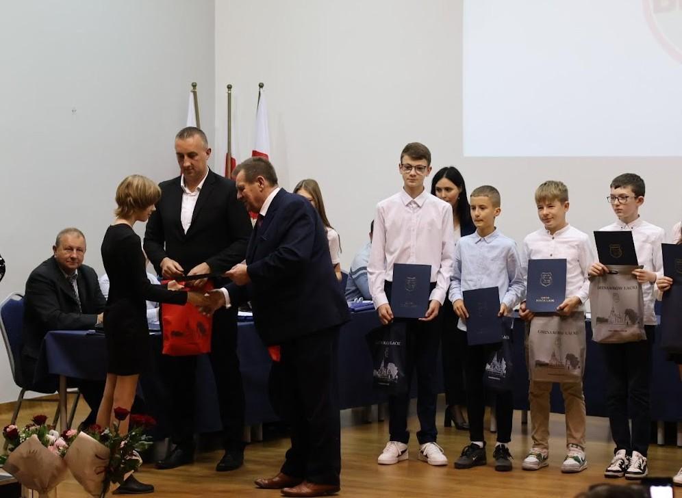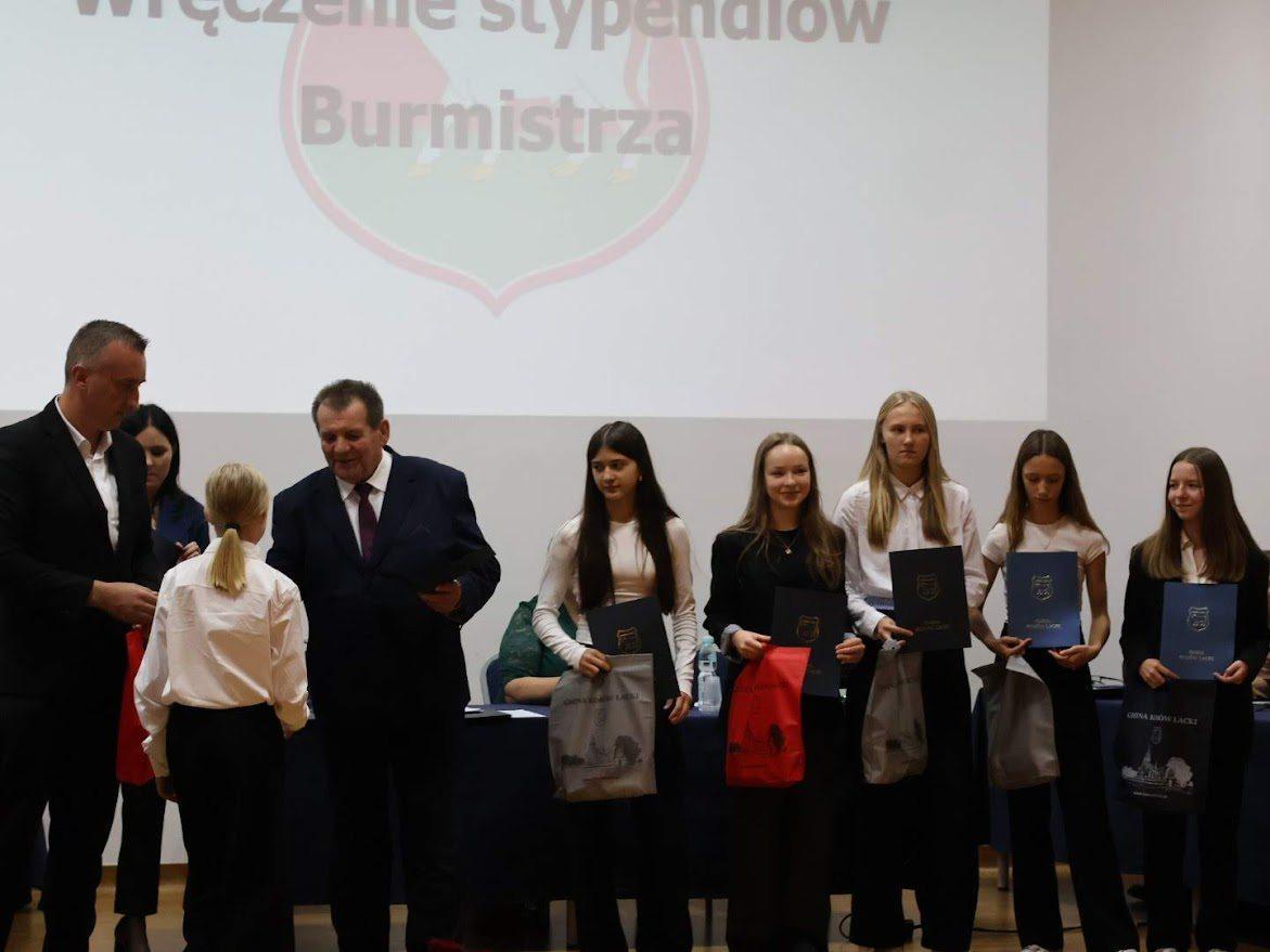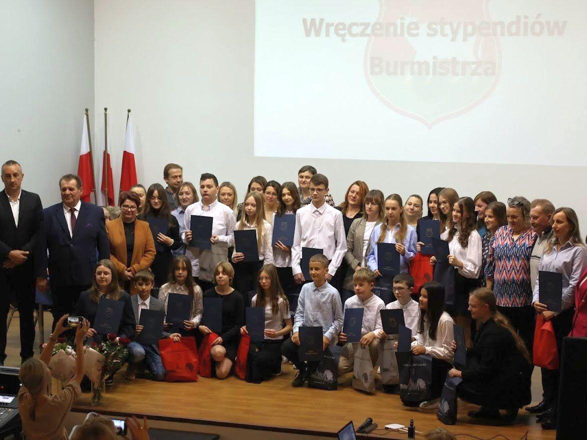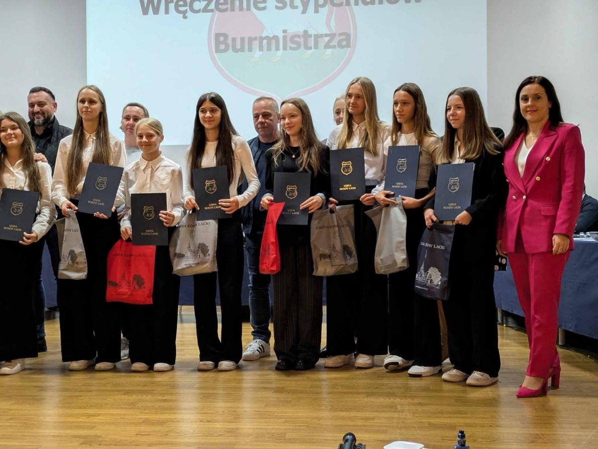Galeria zdjęć z uroczystości wręczenia stypendiów burmistrza Miasta i Gminy Kosów Lacki uczniom za ich osiągnięcia w nauce i sporcie. Radość, uśmiechy i duma na twarzach zarówno stypendystów, jak i ich rodziców. Młodzi ludzie otrzymujący nagrody pieniężne oraz gratulacje od burmistrza. Atmosfera współczesności, pasji i wsparcia dla młodych talentów.