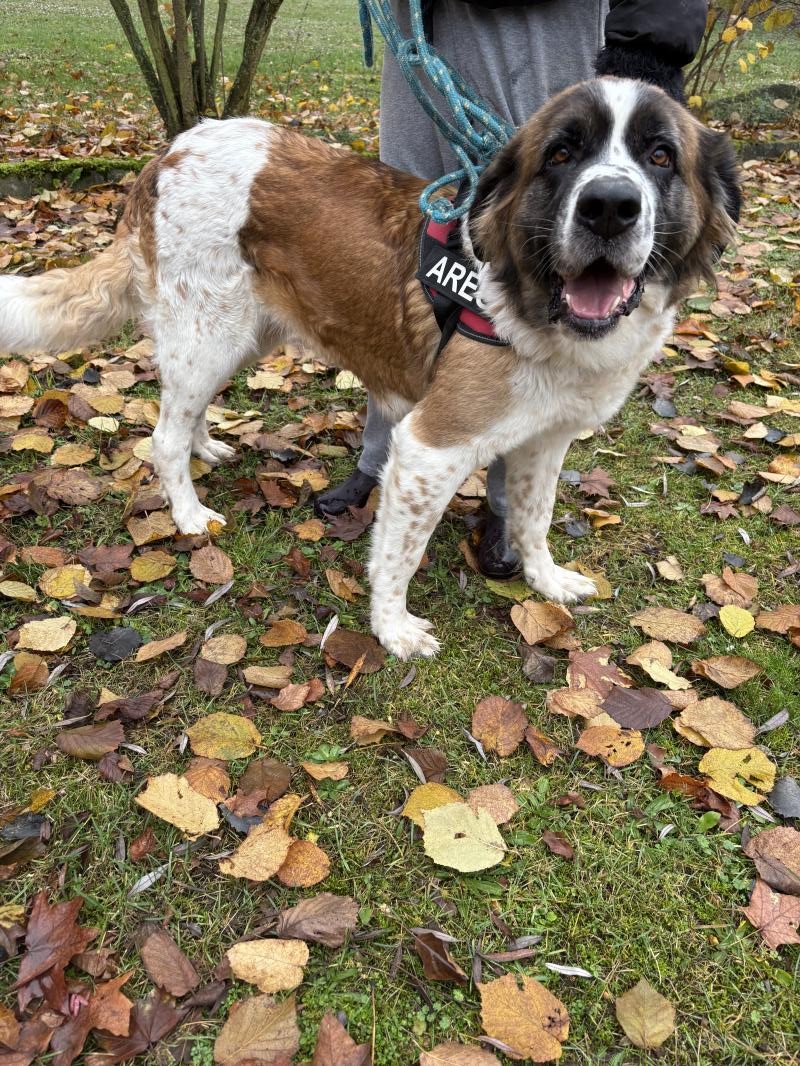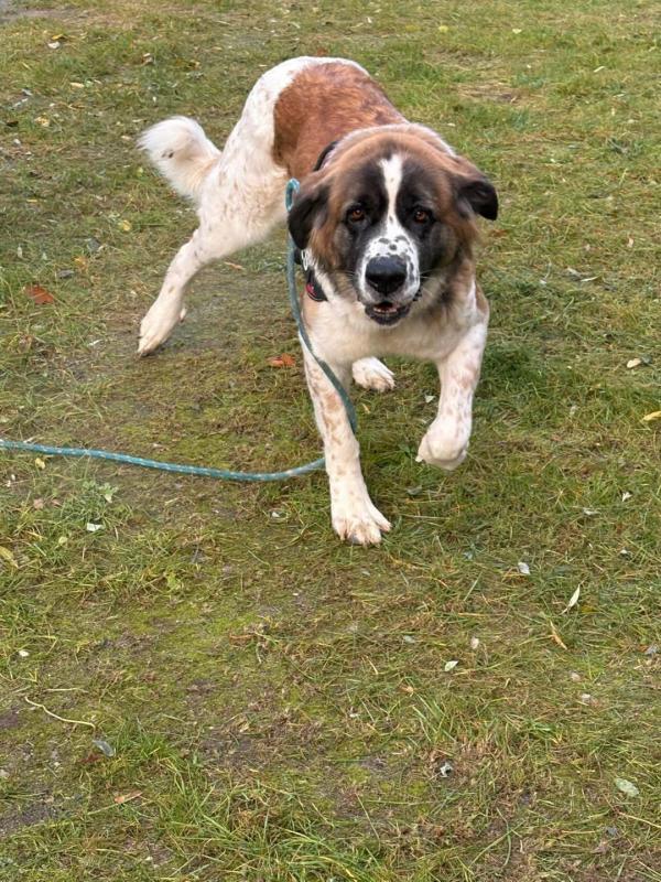 Malina – łagodna sunia w typie bernardyna – czeka na odpowiedzialnego opiekuna. Jest przyjazna, lubi ludzi i ładnie chodzi na smyczy. Szukamy domu, w którym będzie pełnoprawnym członkiem rodziny – łańcuch i kojec nie wchodzą w grę.